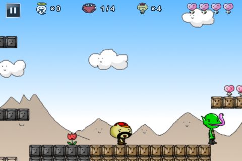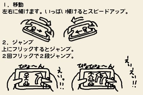 基本操作は本体を左右に傾けて移動、上にフリックでジャンプという極悪操作性。