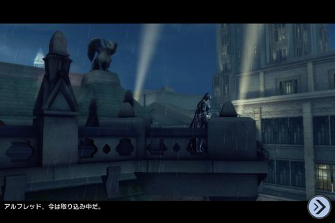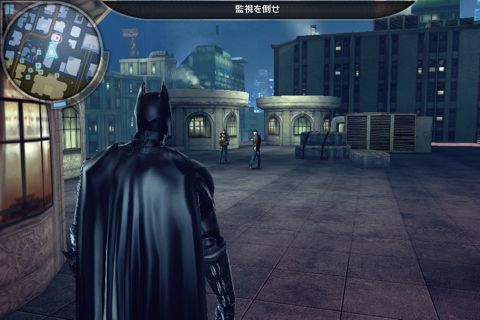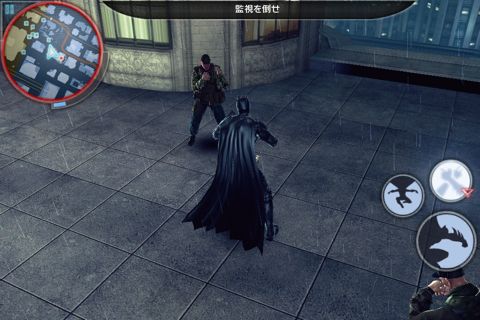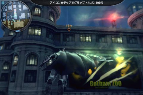 バットマンのアイテム、グラップネルガンも登場します。アイコンをタップして、屋上へと行きましょう。