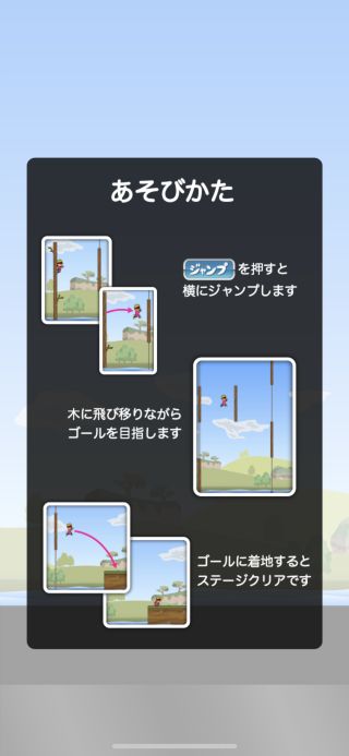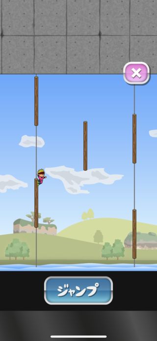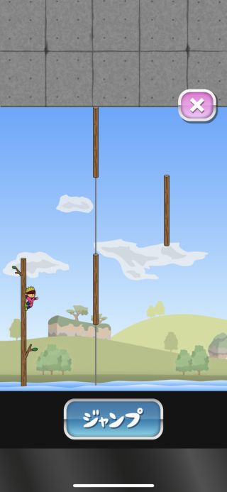 タイミングよく丸太を次々とジャンプで渡っていく、カジュアルアクションゲーム。