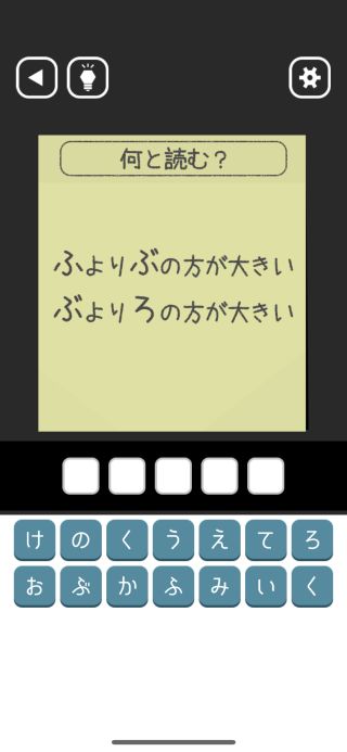 見つけた付箋をタップすると問題文が表示され、回答は画面下部の文字の中から選択する方式になっている。
