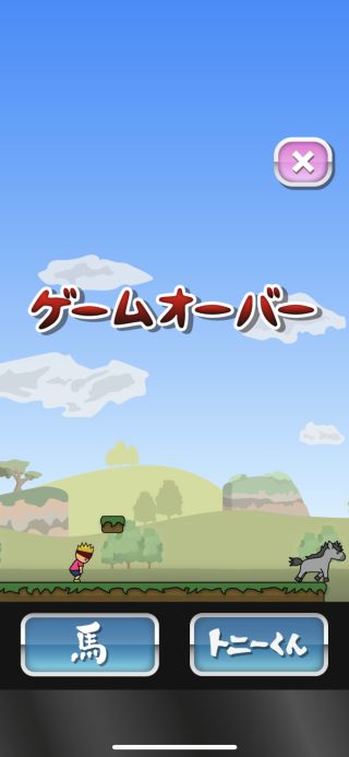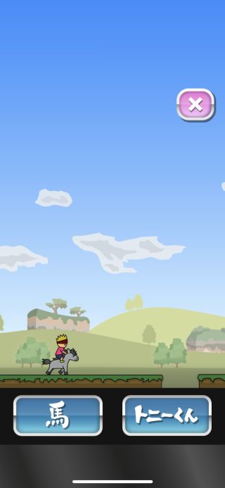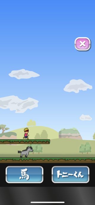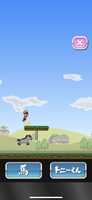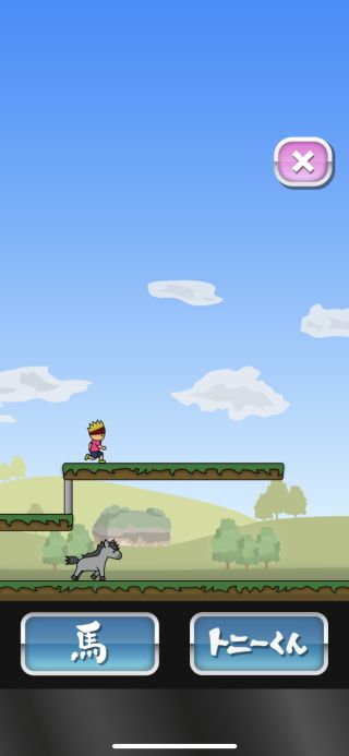 2つのボタンで馬とトニーくんを分けてジャンプさせて障害物を超えていこう。