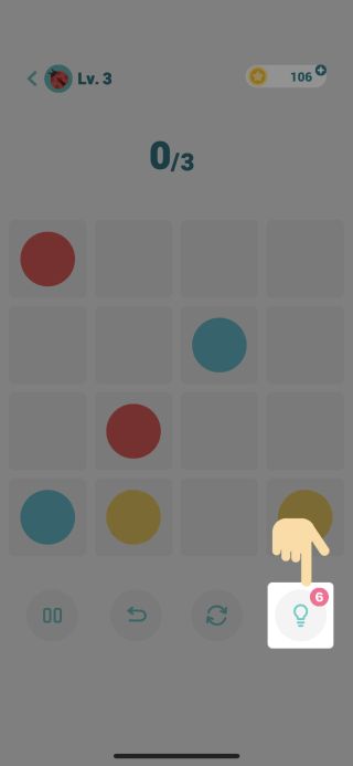 右下のヒントボタンを押すと、1つのドットの正解ラインを教えてくれる。
