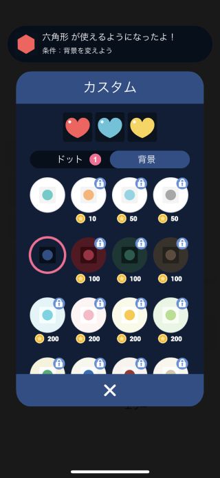 新しいドットの開放にはコインの他、特定条件を満たす事でアンロックされる物もある。