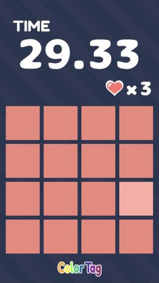 ステージごとに表示される色はランダムで、先に進むとどんどん色の差が少なくなって難易度が上がっていく。