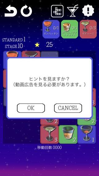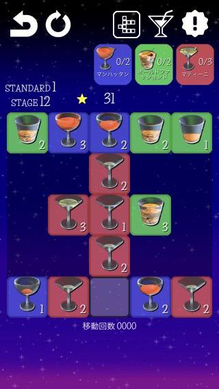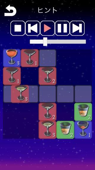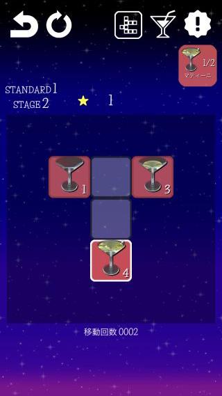 気をつけなければいけないのは、数字を『4』にして完成させたカクテルのパネルは動かす事ができなくなる。