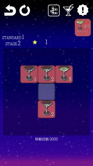 スライドするタイルを合成してカクテルを完成させるのが目的の、シンプルなカジュアルパズルゲーム。