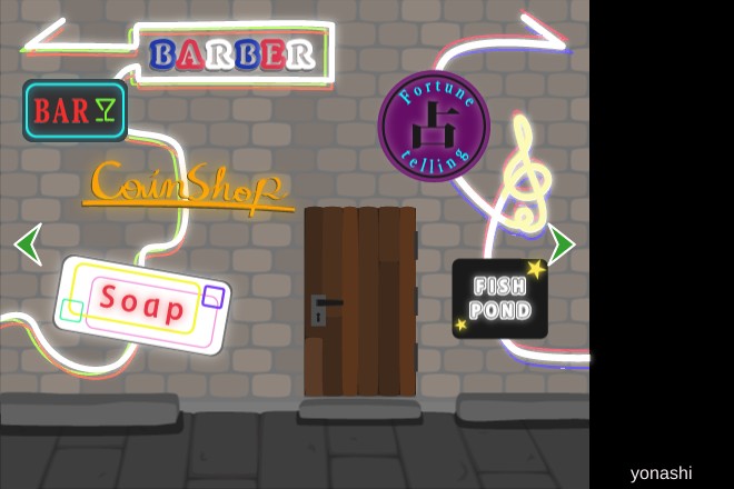 夜の路地裏が舞台の、オーソドックスな脱出ゲーム。