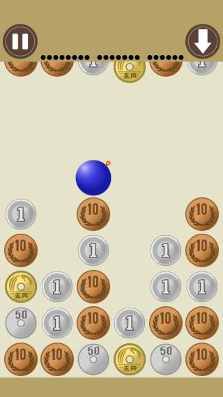 時々出現する爆弾は、消し去りたい硬貨に向けてドラッグすると1つだけ消す事ができる。