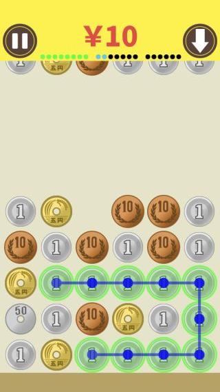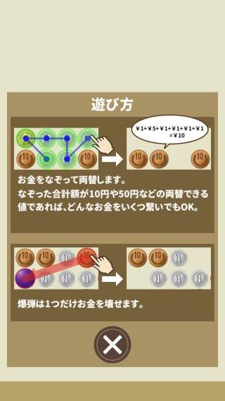 硬貨をなぞって両替していく、落ちものパズルゲーム。