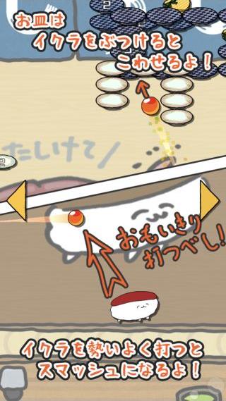 おしゅしを自由自在に動かして、イクラをスマッシュで打ち返して皿を壊していこう!