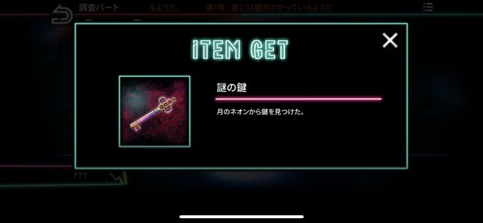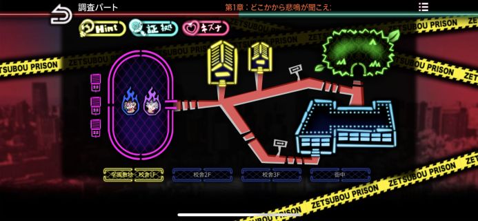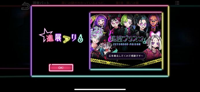 証拠となるアイテムを入手したり、会話によって手がかりを得る事ができれば『進展アリ』と表示される。