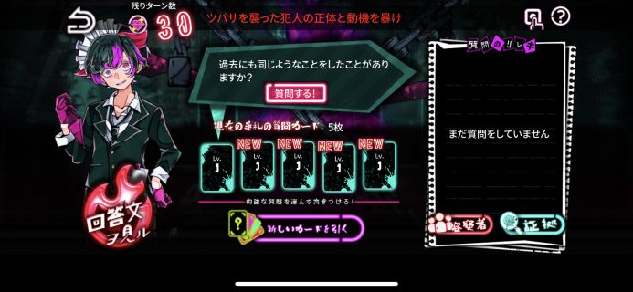 質問の中には『的確な質問』が存在し、これを突きつける事で質問カードのレベルが上ってさらに核心を突く質問カードを引けるようになる。