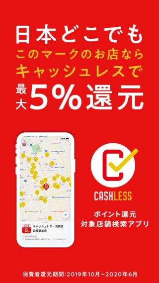 中小・小規模企業が経営する店舗でキャッシュレスによる決済を利用した際に、ポイント還元がなされる店舗を調べる事ができる経産省公式の地図アプリ。