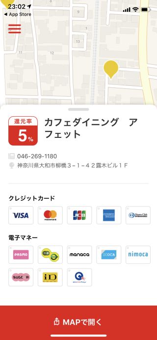 地図上でポイント還元が受けられる店舗がすぐに探せる便利アプリ。
