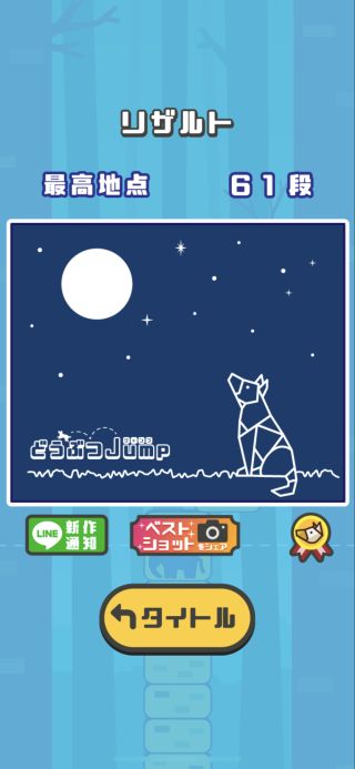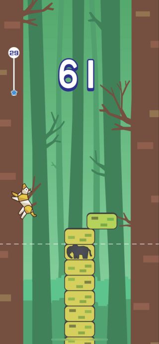 着地に失敗するとゲームオーバーとなり、次回は最後に動物をゲットしたブロックからのスタートとなる。
