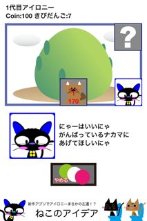 ハズレでゲットした「きびだんご」を仲間にあげましょう。攻撃力が上がります。アイロニーにあげようとすると、いらないにゃーと怒られる。