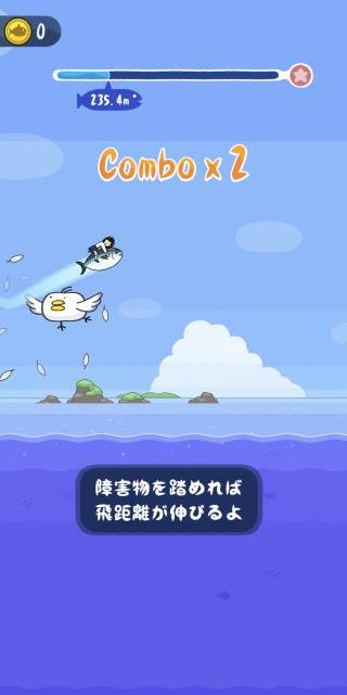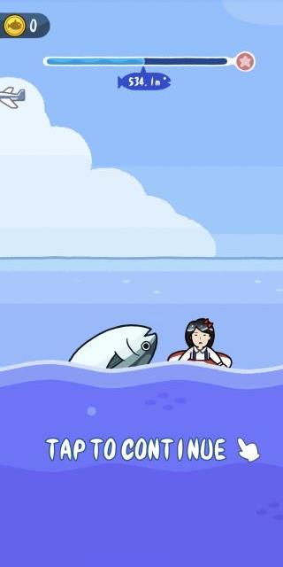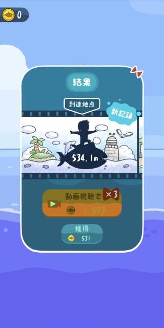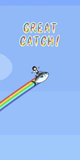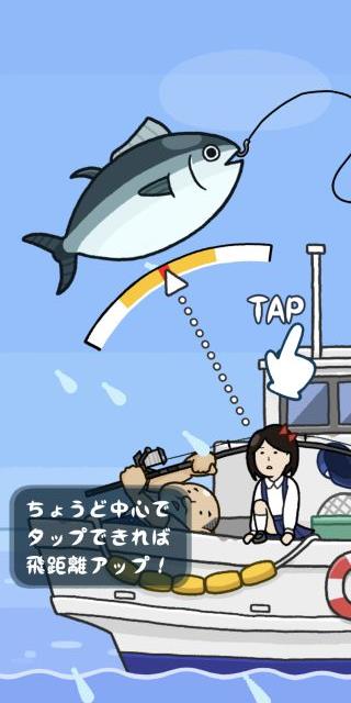 釣ったマグロに飛び乗って飛距離を競う、ちょっとシュールなカジュアルアクションゲーム。