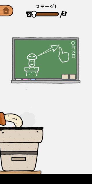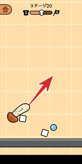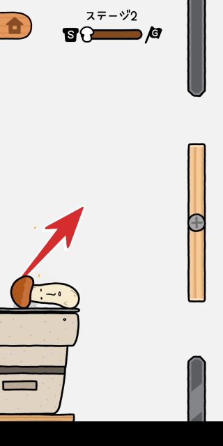 きのこをタップして飛ばしたい方向にスワイプさせ、障害物をうまく利用してゴールを目指そう。