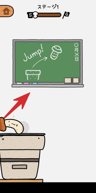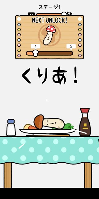 スワイプ操作できのこをジャンプさせ、ゴールの食卓を目指すカジュアルアクションゲーム。