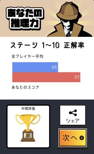 10問ごとにあなたの推理力が分かる新システムも搭載!!他の探偵との差をつけろ!