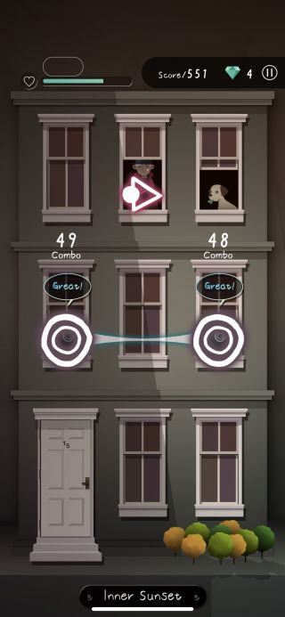 建物の窓から出てくる様々なキャラクターに合わせて、タイミング良くタップやフリックをして音楽を奏でよう。