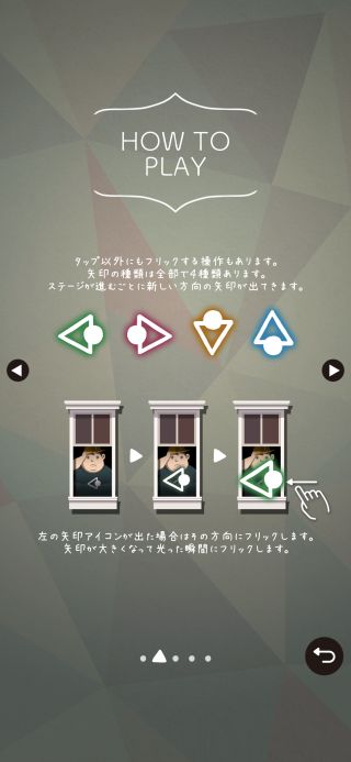 ステージが進むと矢印が出てくる事があり、この場合はその方向にフリックする。