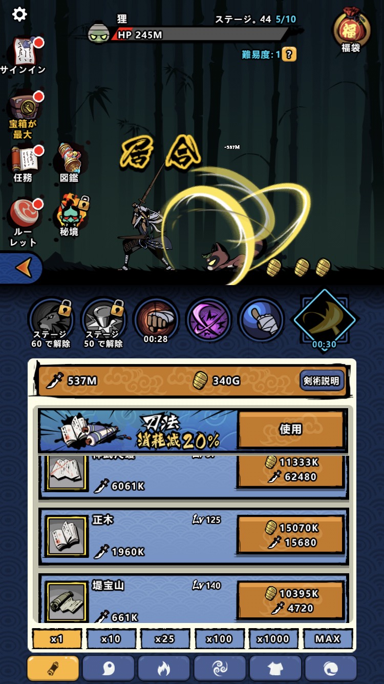 サムライがレベルアップすると、攻撃力も強化されるのでバトルを効率よく進められる。