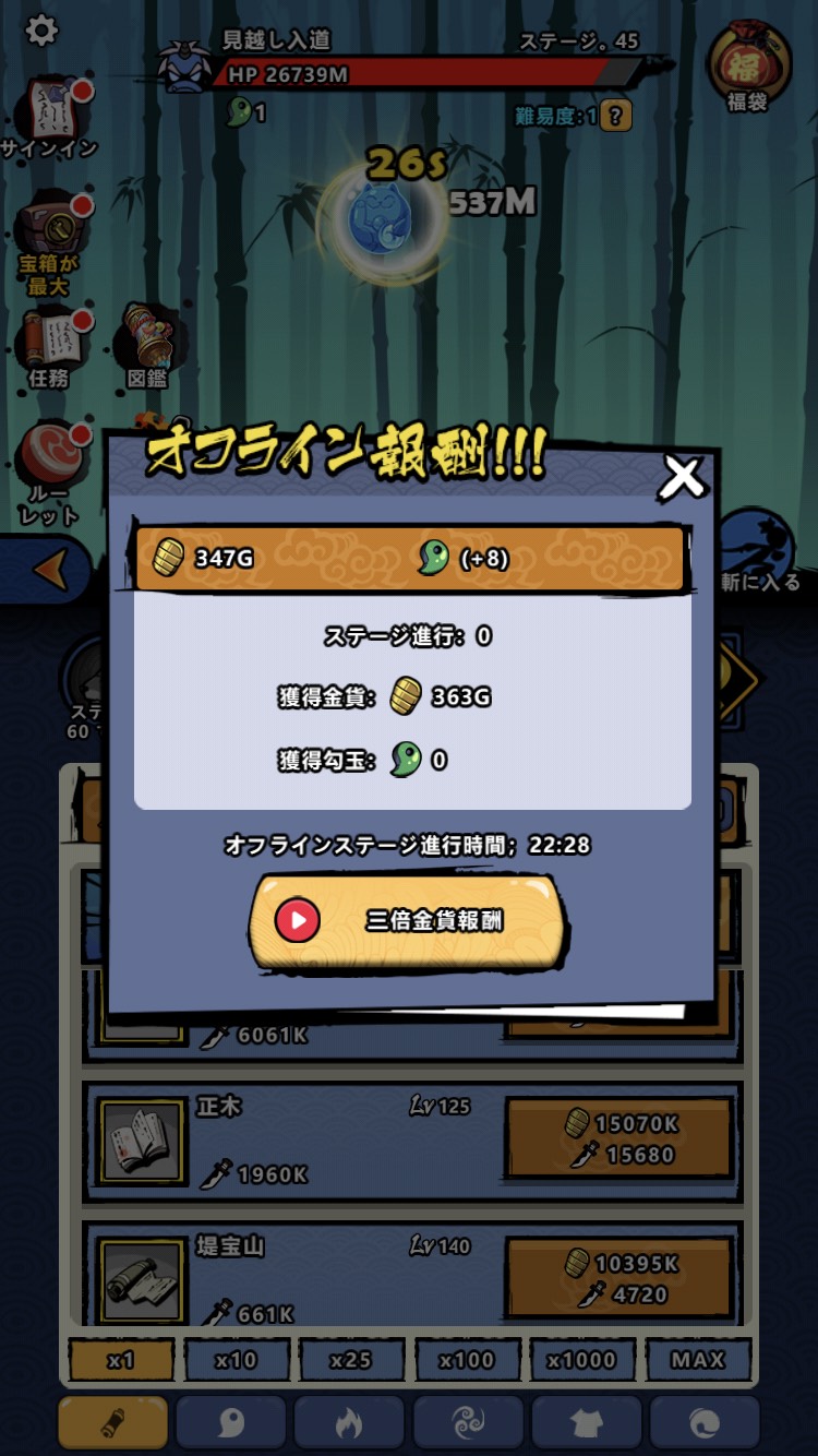 長時間放置した後はオフライン報酬が3倍になるチャンス!?