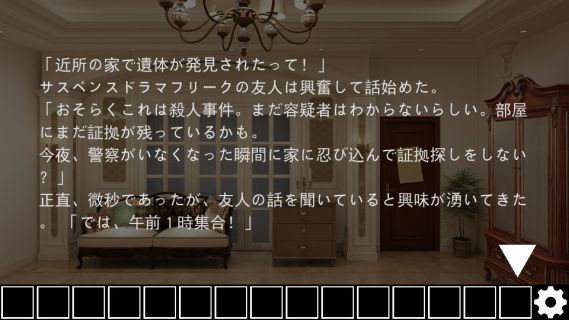 「犯人はまだ捕まっていない。部屋の中には証拠品がまだ残っているかも知れない。今夜、犯人探しをしてみないか?」僕は、興味を駆り立てられ二つ返事で応じた。