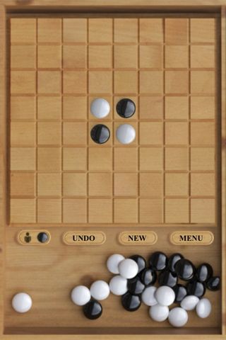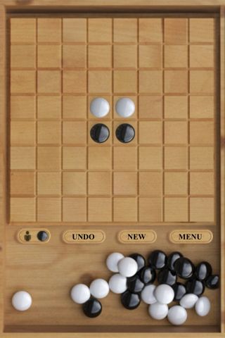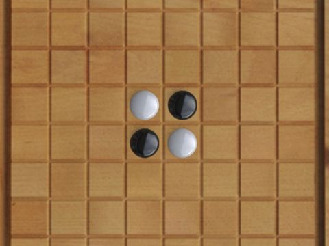 プレイ中の画面です。木目調に描かれている盤面のせいか、囲碁にも見えますが、オセロです。私は黒です。負けていますが、オセロは大逆転可能なゲームなので、最後まで諦めてはいけません。