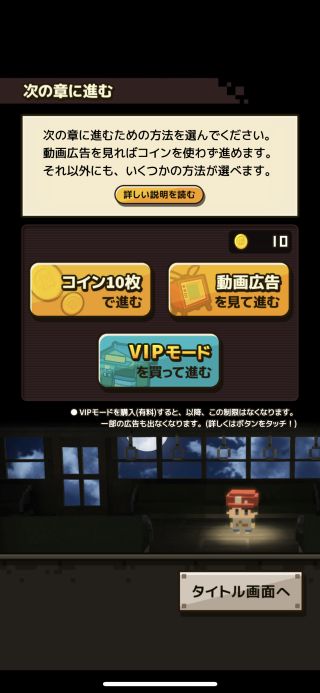 ゲーム本編は章仕立てになっていて、先に進むためには「コイン」が必要になる。