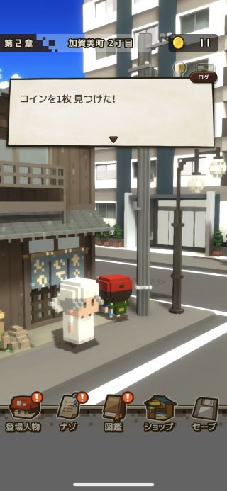 「コイン」は町中を探索する事で見つかり、動画視聴で消費せずに先に進む事もできる。