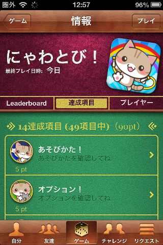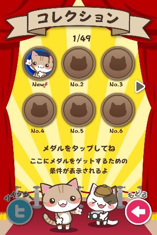 メダルコレクションは49種類で、GameCenterの達成項目と連動している。