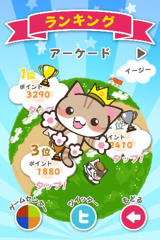 手軽なワンタッチアクションで、メダルコレクションなどのやりこみ要素やワールドランキングにも対応している。