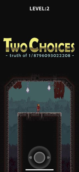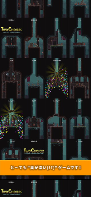 左右どちらか2分の1のルートをひたすら選んで最深部を目指していくカジュアルゲーム。