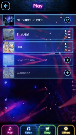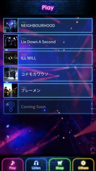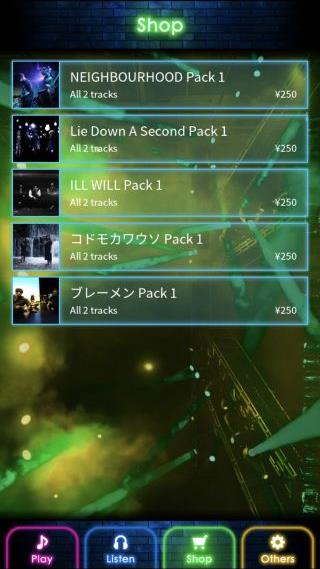 楽曲は「Shop」で購入する事が可能なので、気になったアーティストの曲でリズムゲームを楽しもう!