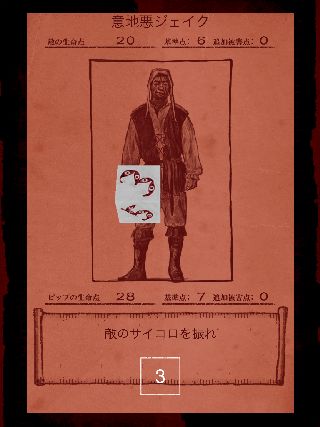 ここでもサイコロを振って数値で双方のダメージが決まるが、数値の計算はもちろん全自動なのはアプリならでは。