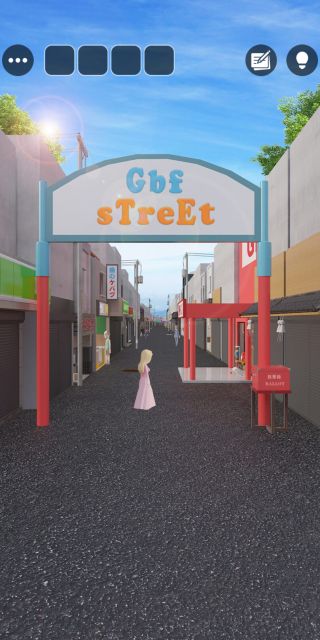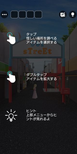 細長い商店街を探索して、全ての謎を解いてクリアを目指そう!