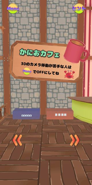 大きなカニのかにおのカフェが舞台の、オーソドックスな脱出ゲーム。