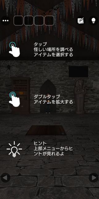 基本操作はタップのみで、移動は左右の矢印ボタンで行う。