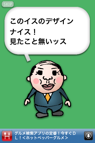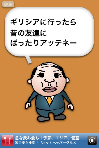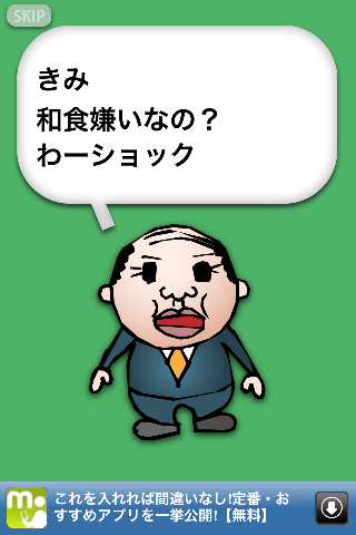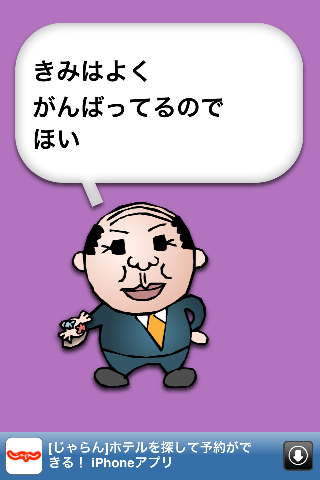 ボタンを押すと、様々なシチュエーションでおやじが登場してくる。