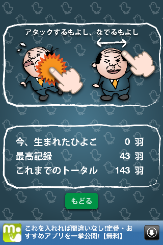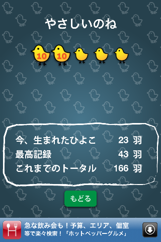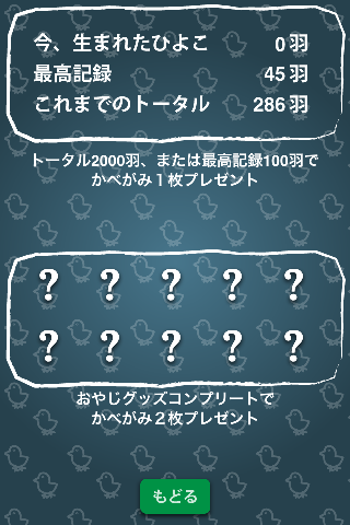タップで殴るとヒヨコが出てきて、生まれたヒヨコの数が記録されていく。
