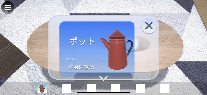入手したアイテムはダブルタップで拡大でき、アイテム同士の組み合わせ要素はない。