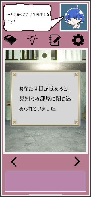 目が覚めると、あなたは見知らぬ部屋にいました。