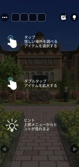 広大な庭が舞台の、オーソドックスな脱出ゲーム。