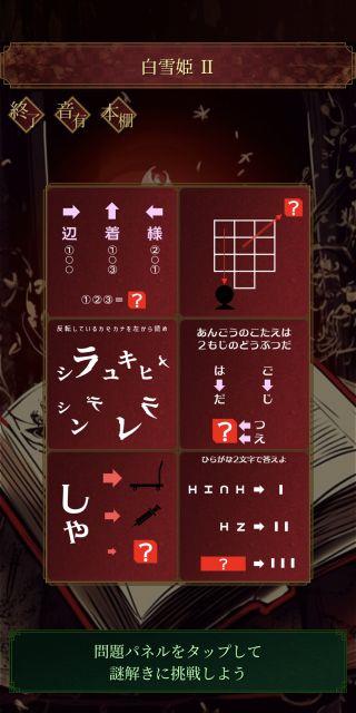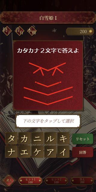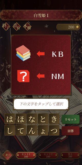 1つの本で出題される問題は6問で、答えは10文字のパネルから選択して解答するシステムになっている。