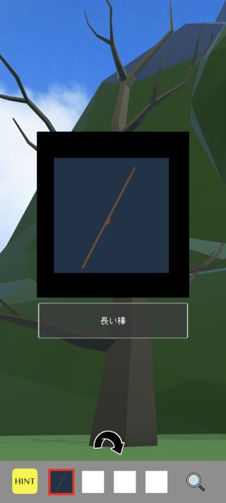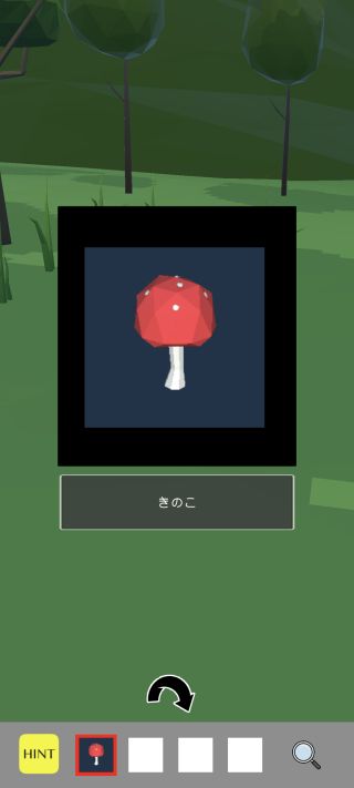 入手したアイテムは画面下部の所持品欄で選択して使用し、右下の虫眼鏡ボタンで拡大できる。