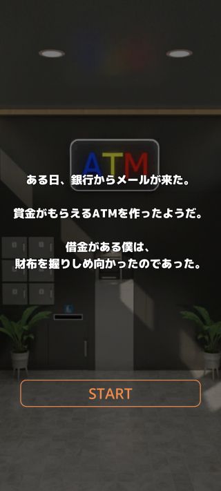 銀行のATMが舞台の、オーソドックスな脱出ゲーム。