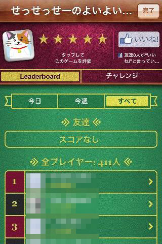 iPhone版のランキングはGameCenterのリーダーボードに対応している。