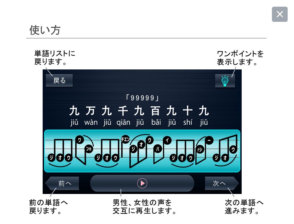 日本人にとって難しいと言われる中国語の発音を、音声ナビとカタカナ音符でらくらくマスターできる語学アプリの新たな定番になりそう。